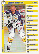 HCAP1 Pauli Jaks HC Ambri Piotta HCAP2 Fredy Bobillier HC Ambri Piotta HCAP3 Ivan Gazzaroli HC Ambri Piotta HCAP4 Tiziano Gianini HC Ambri Piotta HCAP5 Thomas Künzi HC Ambri Piotta HCAP6 Leif Rohlin HC Ambri Piotta HCAP7 Krister Cantoni HC Ambri Piotta HCAP8 Manuele Celio HC Ambri Piotta HCAP9 Nicola Celio HC Ambri Piotta HCAP10 Alain Demuth HC Ambri Piotta HCAP11 Paolo Duca HC Ambri Piotta HCAP12 John Fritsche HC Ambri Piotta HCAP13 Ryan Gardner HC Ambri Piotta HCAP14 Paolo Imperatori HC Ambri Piotta HCAP15 Stéphan Lebeau HC Ambri Piotta HCAP16 Daniel Marois HC Ambri Piotta SCB1 Renato Tosio SC Bern SCB2 David Jobin SC Bern SCB3 Sven Leuenberger SC Bern SCB4 Dominic Meier SC Bern SCB5 Ferderik Olausson SC Bern SCB6 Martin Steinegger SC Bern SCB7 Rolf Ziegler SC Bern SCB8 Björn Christen SC Bern SCB9 Patrick Howald SC Bern SCB10 Andreas Johansson SC Bern SCB11 Patrick Juhlin SC Bern SCB12 Alex Chatelain SC Bern SCB13 Boris Leimgruber SC Bern SCB14 Ivo Rüthemann SC Bern SCB15 Franz Steffen SC Bern SCB16 Marc Weber SC Bern HCCF1 Thomas Berger HC La Chaux De Fonds HCCF2 Raphael Brusa HC La Chaux De Fonds HCCF3 Fabian Guignard HC La Chaux De Fonds HCCF4 Waleri Schirjajew HC La Chaux De Fonds HCCF5 Ruedi Niederöst HC La Chaux De Fonds HCCF6 Roger Öhmann HC La Chaux De Fonds HCCF7 Alexis Varcheron HC La Chaux De Fonds HCCF8 Steve Aebersold HC La Chaux De Fonds HCCF9 Thomas Deruns HC La Chaux De Fonds HCCF10 Claude Lühti HC La Chaux De Fonds HCCF11 Fabrice Maillat HC La Chaux De Fonds HCCF12 Daniel Nakaoka HC La Chaux De Fonds HCCF13 Stefan Nilsson HC La Chaux De Fonds HCCF14 Julien Türler HC La Chaux De Fonds HCCF15 Samuel Villiger HC La Chaux De Fonds HCCF16 Thibaut Monnet HC La Chaux De Fonds EHCC1 Nando Wieser EHC Chur EHCC2 Noël Guyaz EHC Chur EHCC3 Christian Langer EHC Chur EHCC4 Ivo Stoffel EHC Chur EHCC5 Mika Strömberg EHC Chur EHCC6 Pasi Sormunen EHC Chur EHCC7 Matthias Baechler EHC Chur EHCC8 Patrick Krüger EHC Chur EHCC9 Michael Meier EHC Chur EHCC10 Michael Rosenast EHC Chur EHCC11 Oliver Roth EHC Chur EHCC12 Marc Haueter EHC Chur EHCC13 Sandro Tschuor EHC Chur EHCC14 Raymond Walder EHC Chur EHCC15 Theo Wittmann EHC Chur EHCC16 ??? EHC Chur HCD1 Lars Weiber HC Davos HCD2 Beat Equilino HC Davos HCD3 Marc Gianola HC Davos HCD4 Andreas Häller HC Davos HCD5 Ralph Ott HC Davos HCD6 Jan Von Arx HC Davos HCD7 André Baumann HC Davos HCD8 Lonny Bohonos HC Davos HCD9 Patrick Fischer HC Davos HCD10 Kevin Miller HC Davos HCD11 René Müller HC Davos HCD12 Thierry Paterlini HC Davos HCD13 Sandro Rizzi HC Davos HCD14 Frédéric Rohten HC Davos HCD15 Mario Schocher HC Davos HCD16 Pat Falloon HC Davos HCFG1 Thomas Östlund HC Fribourg Gotteron HCFG2 Goran Bezina HC Fribourg Gotteron HCFG3 Antonie Descloux HC Fribourg Gotteron HCFG4 Livio Fazio HC Fribourg Gotteron HCFG5 Philippe Marquis HC Fribourg Gotteron HCFG6 Martin Rauch HC Fribourg Gotteron HCFG7 Marc Werlen HC Fribourg Gotteron HCFG8 Craig Ferguson HC Fribourg Gotteron HCFG9 Lars Leuenberger HC Fribourg Gotteron HCFG10 Gil Montandon HC Fribourg Gotteron HCFG11 Mario Rottaris HC Fribourg Gotteron HCFG12 Jean-Yves Roy HC Fribourg Gotteron HCFG13 Pascal Schaller HC Fribourg Gotteron HCFG14 Robert Slehofer HC Fribourg Gotteron HCFG15 Gerd Zenhäusern HC Fribourg Gotteron HCFG16 Michel Mouther HC Fribourg Gotteron EHCK1 Reto Pavoni Kloten Flyers EHCK2 Martin Höhener Kloten Flyers EHCK3 Marko Kiprusoff Kloten Flyers EHCK4 Marco Klöti Kloten Flyers EHCK5 Oskar Szcepaniec Kloten Flyers EHCK6 ??? Kloten Flyers EHCK7 Fredrik Nilsson Kloten Flyers EHCK8 Sven Helfenstein Kloten Flyers EHCK9 Felix Hollenstein Kloten Flyers EHCK10 Andy Keller Kloten Flyers EHCK11 Sven Lindemann Kloten Flyers EHCK12 Martin Plüss Kloten Flyers EHCK13 Sébastien Reuille Kloten Flyers EHCK14 André Rufener Kloten Flyers EHCK15 Steve Washburn Kloten Flyers EHCK16 Adrian Wichser Kloten Flyers SCLT1 Martin Gerber SC Langnau Tigers SCLT2 Daniel Aegeter SC Langnau Tigers SCLT3 Samuel Balmer SC Langnau Tigers SCLT4 Beat Gerber SC Langnau Tigers SCLT5 Steve Hirschi SC Langnau Tigers SCLT6 Erik Kakko SC Langnau Tigers SCLT7 Pascal Müller SC Langnau Tigers SCLT8 Pascal Stoller SC Langnau Tigers SCLT9 Rolf Badertscher SC Langnau Tigers SCLT10 Bruno Brechbühl SC Langnau Tigers SCLT11 John Fust SC Langnau Tigers SCLT12 Daniel Gauthier SC Langnau Tigers SCLT13 Thomas Heldner SC Langnau Tigers SCLT14 Matthias Holzer SC Langnau Tigers SCLT15 Vlastimil Plavucha SC Langnau Tigers SCLT16 Benoit Pont SC Langnau Tigers HCL1 Cristobal Huet HC Lugano HCL2 Peter Anderson HC Lugano HCL3 Igor Fedulow HC Lugano HCL4 Sandro Bertaggia HC Lugano HCL5 Olivier Keller HC Lugano HCL6 Julien Vauclair HC Lugano HCL7 Gaëtan Voisard HC Lugano HCL8 J.-Jacques Aeschlimann HC Lugano HCL9 Misko Antisin HC Lugano HCL10 Philippe Bozon HC Lugano HCL11 Jan-Philippe Cadieux HC Lugano HCL12 Falvien Conne HC Lugano HCL13 Christian Dubé HC Lugano HCL14 Régis Fuchs HC Lugano HCL15 Sandy Jeannin HC Lugano HCL16 Keith Fair HC Lugano SCRJ1 Claudio Bayer SC Rapperswil Jona SCRJ2 Marco Capaul SC Rapperswil Jona SCRJ3 Kari Martikainen SC Rapperswil Jona SCRJ4 Rober Sigg SC Rapperswil Jona SCRJ5 Jörg Reber SC Rapperswil Jona SCRJ6 Loïc Burkhalter SC Rapperswil Jona SCRJ7 Markus Bütler SC Rapperswil Jona SCRJ8 René Friedli SC Rapperswil Jona SCRJ9 René Furler SC Rapperswil Jona SCRJ10 Daniel Giger SC Rapperswil Jona SCRJ11 Axel Heim SC Rapperswil Jona SCRJ12 Philipp Lüber SC Rapperswil Jona SCRJ13 Dale McTavish SC Rapperswil Jona SCRJ14 Patrizio Morger SC Rapperswil Jona SCRJ15 Mike Richard SC Rapperswil Jona SCRJ16 Bernhard Schümperlin SC Rapperswil Jona EVZ1 Ronnie Rüeger EV Zug EVZ2 Patrick Schöpf EV Zug EVZ3 Marco Bayer EV Zug EVZ4 Patrick Fischer EV Zug EVZ5 Dino Kessler EV Zug EVZ6 André Künzi EV Zug EVZ7 Patrick Sutter EV Zug EVZ8 Paul Di Pietro EV Zug EVZ9 Todd Elik EV Zug EVZ10 Stefan Grogg EV Zug EVZ11 Vjeran Ivankovic EV Zug EVZ12 Daniel Meier EV Zug EVZ13 Patrick Oppliger EV Zug EVZ14 Andr