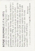 This set features legendary Swedish athletes. Each card were printed in 500 copies. The photos of the athletes in this set are identical to cards 1-36 in the 1997-98 Alfabilder 97 set. However, the cards in this year's set are much smaller than the 1997-98 set and there are no signatures on the cards.