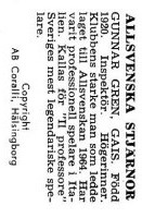 GAIS 144 Leif Andersson 145 Kent Grek 146 Bo Palle 147 Bo Johansson 148 Leif Forsberg 149 Bengt Apell 150 Sten-Olof Johansson 151 Gunnar Gren 152 Bengt Johansson 153 Hasse Samuelsson 154 Alf Johansson Eskilstuna 155 L-G Lundewall 156 Clas Rudberg 157 Hans-Olov Söderquist 158 Einar Janserudvangen 159 Nils-Birger Söderquist 160 Bengt Anlert 161 Reinhold Edvardsson 162 Olle Andersson 163 Clas Thell 164 Erik Berglund
