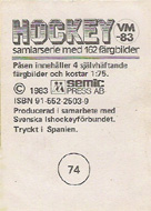 Sverige 1 Peter Lindmark 2 Göte Wälitalo 3 Lars Eriksson 4 Roger Hägglund 5 Thomas Eriksson 6 Mats Waltin 7 Jan Eriksson 8 Mats Thelin 9 Michael Thelvén 10 Peter Andersson 11 Bo Ericson 12 Bo Berglund 13 Tomas Sandström 14 Per-Erik Eklund 15 Roland Eriksson 16 Peter Sundström 17 Thomas Rundqvist 18 Mats Ulander 19 Tommy Mörth 20 Ove Olsson 21 Håkan Södergren 22 Håkan Loob 23 Leif Holmgren 24 Jan Erixon 25 Tom Eklund Finland 26 Hannu Kamppuri 27 Rauli Sohlman 28 Kari Takko 29 Pekka Rautakallio 30 Pertti Lehtonen 31 Hannu Haapalainen 32 Markus Lehto 33 Juha Huikari 34 Hannu Helander 35 Lasse Litma 36 Arto Routanen 37 Raimo Summanen 38 Arto Javaninen 39 Jari Lindgren 40 Risto Jalo 41 Petri Skriko 42 Juha Nurmi 43 Erkki Laine 44 Anssi Melametsä 45 Reijo Leppänen 46 Matti Hagman 47 Kari Makkonen 48 Timo Susi 49 Harri Touhimaa 50 Arto Jokinen Sovjet 51 Vladislav Tretiak 52 Vladimir Mysjkin 53 Vjatjeslav Fetisov 54 Sergej Babinov 55 Vasilij Pervuchin 56 Sergej Gimajev 57 Aleksej Kasatonov 58 Zinetula Biljaletdinov 59 Sergej Starikov 60 Sergej Makarov 61 Sergej Sjepelev 62 Vladimir Krutov 63 Nikolaj Drozdetskij 64 Viktor Zjluktov 65 Viktor Sjalimov 66 Vladimir Golikov 67 Aleksandr Maltsev 68 Andrej Chomutov 69 Vjatjeslav Bykov 70 Michail Vasiljev 71 Sergej Kapustin 72 Aleksandr Gerasimov 73 Aleksandr Kozjevnikov 74 Igor Larionov 75 Vladimir Zubkov Tjeckoslovakien 76 Jiri Kralik 77 Karel Lang 78 Jaromir Sindel 79 Miroslav Horava 80 Milan Chalupa 81 Stanislav Hajdusek 82 Arnold Kadlec 83 Ladislav Kolda 84 Jaroslav Benak 85 Radoslav Svoboda 86 Eduard Uvira 87 Antonin Planovsky 88 Petr Slanina 89 Jiri Lala 90 Jindrich Kokrment 91 Frantisek Cernik 92 Darius Rusnak 93 Dusan Pasek 94 Pavel Richtr 95 Jaroslav Korbela 96 Ivan Dornic 97 Jiri Hrdina 98 Igor Liba 99 Jiri Dudacek 100 Vincent Lukac Västtyskland 101 Erich Weishaupt 102 Bernhard Engelbrecht 103 Karl-Heinz Friesen 104 Ignaz Berndaner 105 Udo Kiessling 106 Harold Kreis 107 Joachim Reil 108 Gerd Truntschka 109 Ulrich Egen 110 Marcus Kuhl 111 Peter Schiller 112 Erich Kühnhackl 113 Holger Meitinger 114 Ernst Höfner 115 Dieter Hegen 116 Manfred Wolf 117 Johann Mörz 118 Franz Reindl 119 Helmut Steiger 120 Horst-Peter Kretschmer 121 Roy Roedger Italien 122 Jim Corsi 123 Nick Sanza 124 Guido Tenisi 125 Erwin Kostner 126 Mike Amodeo 127 John Bellio 128 Dave Tomassoni 129 Bob Manno 130 Gino Pasqualotto 131 Fabio Polloni 132 Adolf Insam 133 Constant Priondolo 134 Rick Bragnalo 135 Michael Mair 136 Alberto Di Fazio 137 Cary Farelli 138 Tom Milani 139 Martin Pavlu 140 Bob De Piero 141 Grant Goegan 142 Jerry Ciarcia DDR 143 Rene Bielke 144 Ingolf Spantig 145 Frank Braun 146 Joachim Lempio 147 Reinhardt Fengler 148 Dieter Frenzel 149 Klaus Schröder 150 Dietmar Peters 151 Dieter Simon 152 Andreas Ludwig 153 Detlef Radant 154 Friedhelm Bögelsack 155 Thomas Graul 156 Roland Peters 157 Frank Proske 158 Fred Bartell 159 Harald Kuhnke 160 Gerhard Müller 161 Harald Bölke 162 Dieter Kinzel