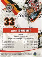 Brynäs IF 1 Markus Korhonen 2 Daniel Johansson 3 Tommy Sjödin 4 Daniel Casselståhl 5 Henrik Malmström 6 Jakob Johansson 7 Patrik Rönnqvist 8 Roger Kyrö 9 Ove Molin 10 Björn Danielsson 11 Tommi Miettinen Djurgårdens IF 12 Björn Bjurling 13 Staffan Kronwall 14 Johnny Oduya 15 Daniel Rudslätt 16 Nichlas Falk 17 Tomas Kollar 18 Christian Eklund 19 Fredrik Bremberg 20 Mikael Johansson 21 Marcus Kristoffersson 22 Kenneth Bergqvist Frölunda Indians 23 Johan Jönfeldt 24 Jan-Axel Alavaara 25 Antti-Jussi Niemi 26 Ronnie Sundin 27 Magnus Kahnberg 28 Alexander Steen 35 Jari Tolsa 30 Jonas Esbjörs 31 Niklas Andersson 32 Peter Ström 33 Jonas Johnson 34 Jens Karlsson Färjestads BK 35 Fredrik Eriksson 36 Martin Lindman 37 Jonas Frögren 38 Greger Artursson 39 Radek Hamr 40 Janne Grönvall 41 Hannes Hyvönen 42 Peter Nordström 43 Pär Bäcker 44 Marcel Jenni 45 Peter Hammarström 46 Dieter Kalt HV 71 47 Stefan Liv 48 Fredrik Olausson 49 Ola Thorwalls 50 Jouni Loponen 51 Stefan Hellkvist 52 Per-Åge Skröder 53 Peter Ekelund 54 Martin Thörnberg 55 Anders Huusko 56 Kalle Sahlstedt 57 Pasi Määttänen 58 Mattias Remstam 59 Johan Davidsson Linköpings HC 60 Fredrik Norrena 61 Peter Casparsson 62 Martin Knold 63 Jyrki Välivaara 64 Mikko Peltola 65 Tim Eriksson 66 Fredrik Emvall 67 Jussi Tarvainen 68 Mikael Håkanson 69 Per Eklund Luleå Hockey 70 Gusten Törnqvist 71 Jonas Andersson-Junkka 72 Jan Sandström 73 Tuukka Mäntylä 74 Stefan Nilsson 75 Linus Fagemo 76 Emil Lundberg 77 Thomas Berglund 78 Hans Huczkowski 79 Per Ledin 80 Johan Tellström 81 Pierre Berggren Malmö Redhawks 82 Robert Borgqvist 83 David Petrasek 84 Magnus Österby 85 Petri Liimatainen 86 Johan Norgren 87 Peter Andersson 88 Marcus Magnertoft 89 Frans Nielsen 90 Daniel Rydmark 91 Mikael Wahlberg 92 Kim Staal MoDo Hockey 93 Jan Öberg 94 Martin Johansson 95 Lars Jansson 96 Anders Söderberg 97 Tommy Pettersson 98 Fredrik Warg 99 Magnus Hedlund 100 Morten Green 101 Magnus Gästrin Mora IK 102 Bengt Höglund 103 Adam Andersson 104 Henrik Petré 105 Daniel Back 106 Håkan Bogg 107 Jonas Westerling 108 Magnus Sandberg Södertälje SK 109 Magnus Lindquist 110 Bert Robertsson 111 Jonathan Ericsson 112 Stefan Bemström 113 Erik Norbäck 114 Joakim Eriksson 115 Robert Döme 116 Robert Carlsson 117 Teemu Riihijärvi 118 Gabriel Karlsson 119 Jörgen Bemström 120 Peter Larsson Timrå IK 121 Kimmo Kapanen 122 Tommi Rajamäki 123 Jesper Jäger 124 Sanny Lindström 125 Kalle Koskinen 126 Pär Styf 127 Christian Söderström 128 Niklas Nordgren 135 Valeri Krykov 130 Per Hallin 131 Christian Sjögren 132 Fredrik Sundin Swedish Champions 133 Peter Andersson, Malmö IF, 1992 134 Ove Molin, Brynäs IF, 1993 135 Daniel Rydmark, Malmö IF, 1994 136 Johan Davidsson, HV 71, 1995 137 Thomas Berglund, Luleå HF, 1996 138 Pelle Prestberg, Färjestads BK, 1997 139 Mathias Johansson, Färjestads BK, 1998 140 Roger Kyrö, Brynäs IF, 1999 141 Kristofer Ottosson, Djurgårdens IF, 2000 142 Nichlas Falk, Djurgårdens IF, 2001 143 Dieter Kalt, Färjestads BK, 2002 144 Tomi Kallio, Frölunda Indians, 2003 Brynäs IF 145 Johan Holmqvist 146 Niklas Andersson 147 Mikko Kuparinen 148 Mattias Karlsson 149 Sebastian Sulku 150 Jonas Soling 151 Nicklas Danielsson 152 Andreas Dackell 153 Mikko Luovi 154 Mikael Lind 155 Vesa Viitakoski Djurgårdens IF 156 Rolf Wanhainen 157 Mika Strömberg 158 Daniel Fernholm 159 Daniel Tjärnqvist 160 Rikard Franzén 161 Nils Ekman 162 Kristofer Ottosson 163 Robert Nilsson 164 Johannes Salmonsson 165 Marcus Nilson 166 Jimmie Ölvestad 167 Espen Knutsen 168 Mariusz Czerkawski Frölunda Indians 169 Henrik Lundqvist 170 Tom Koivisto 171 Arto Tukio 172 Christian Bäckman 173 Peter Högardh 174 Joel Lundqvist 175 Loui Eriksson 176 Samuel Påhlsson 177 Martin Plüss 178 Per-Johan Axelsson 179 Tomi Kallio Färjestads BK 180 Daniel Henriksson 181 Robin Jonsson 182 Per Hållberg 183 Mats Trygg 184 Pelle Prestberg 185 Jesper Mattsson 186 Christian Berglund 187 Jonas Höglund 188 Mathias Johansson 189 Jörgen Jönsson 190 Fredrik Eriksson 191 Calle Steen HV 71 192 Boo Ahl 193 Daniel Ljungqvist 194 Per Gustafsson 195 Johan Halvardsson 196 Kimmo Peltonen 197 Mathias Tjärnqvist 198 Andreas Karlsson 199 Andreas Jämtin 200 Stefan Pettersson Linköpings HC 201 Daniel Sperrle 202 Magnus Johansson 203 Henrik Tallinder 204 Christoffer Norgren 205 Jakob Karlsson 206 Johan Franzén 207 Tony Mårtensson 208 Ulf Söderström 209 Brendan Morrison 210 Kristian Huselius 211 Mike Knuble 212 Johan Lindström Luleå Hockey 213 Kristian Antila 214 Johan Fransson 215 Niclas Wallin 216 Roger Åkerström 217 Jaroslav Obsut 218 Jonas Rönnqvist 219 Thomas Koch 220 Justin Williams 221 Jonas Nordquist 222 Fredrik Hynning 223 Karl Fabritius 224 Tomas Holmström Malmö Redhawks 225 Andreas Hadelöv 226 Cristopher Nilstorp 227 Miska Kangasniemi 228 Björn Melin 229 Jan Hammar 230 Jason Deleurme 231 Carl Söderberg 232 Andreas Waldix 233 Mika Hannula 234 Peter Hammarström 235 Markus Matthiasson MoDo Hockey 236 Tommy Salo 237 Mattias Timander 238 Hans Jonsson 239 Tobias Enström 240 Jesper Damgaard 241 Oscar Hedman 242 Pierre Hedin 243 Daniel Sedin 244 Mattias Weinhandl 245 Andreas Salomonsson 246 Peter Öberg 247 Henrik Sedin 248 Peter Forsberg 249 Alexander Steen 250 Per Svartvadet Mora IK 251 Tero Leinonen 252 Andreas Lilja 253 Marko Kauppinen 254 Pavel Skrbek 255 Calle Bergström 256 Peter Nolander 257 Jonathan Granström 258 Marcus Eriksson 259 Shawn Horcoff 260 Kenneth Bergqvist 261 Anders Nilsson 262 Martin Jansson 263 Mikael Simons 264 Peter Nylander Södertälje SK 265 Rastislav Stana 266 Niclas Hävelid 267 Dick Tärnström 268 Peter Popovic 269 Petri Liimatainen 270 Timmy Pettersson 271 Jan Huokko 272 Anders Burström 273 Nicklas Bergfors 274 Jonas Andersson 275 Peter Ferraro 276 Chris Ferraro Timrå IK 277 Miikka Kiprusoff 278 Jimmy Danielsson 279 Johan Svedberg 280 Mats Hansson 281 Lars Jonsson 282 Teemu Aalto 283 Robert Carlsson 284 Kristian Gahn 285 Ya