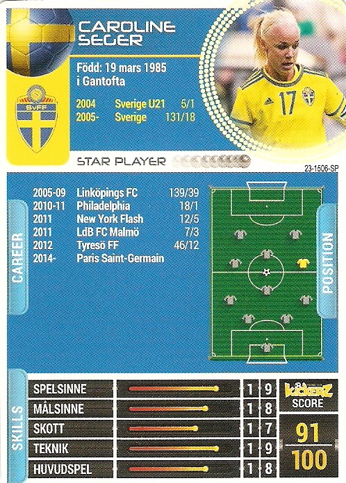 Sweden U21 Branimir Hrgota Star Player John Guidetti Star Player Ludwig Augustinsson Star Player Mikael Ishak Star Player Nicklas Bärkroth Star Player Oscar Hiljemark Star Player Oscar Lewicki Star Player Patrik Carlgren Star Player Sebastian Holmén Star Player Viktor Claesson Star Player Sweden Women's National Team Caroline Seger Star Player Hedvig Lindahl Star Player Kosovare Asllani Star Player Lina Nilsson Star Player Lisa Dahlkvist Star Player Lotta Schelin Star Player Nilla Fischer Star Player Sara Thunebro Star Player Sofia Jakobsson Star Player Therese Sjögran Star Player Sweden Men's National Team Adam Johansson Star Player Albin Ekdal Star Player Alexander Kacaniklic Star Player Andreas Granqvist Star Player Andreas Isaksson Star Player Emil Forsberg Star Player Erik Johansson Star Player Erkan Zengin Star Player Isaac Kiese Thelin Star Player Jimmy Durmaz Star Player Johan Elmander Star Player Kim Källström Star Player Marcus Berg Star Player Martin Olsson Star Player Mikael Antonsson Star Player Mikael Lustig Star Player Ola Toivonen Star Player Pierre Bengtsson Star Player Pontus Wernbloom Star Player Sebastian Larsson Star Player Zlatan Ibrahimovic Diamond Star