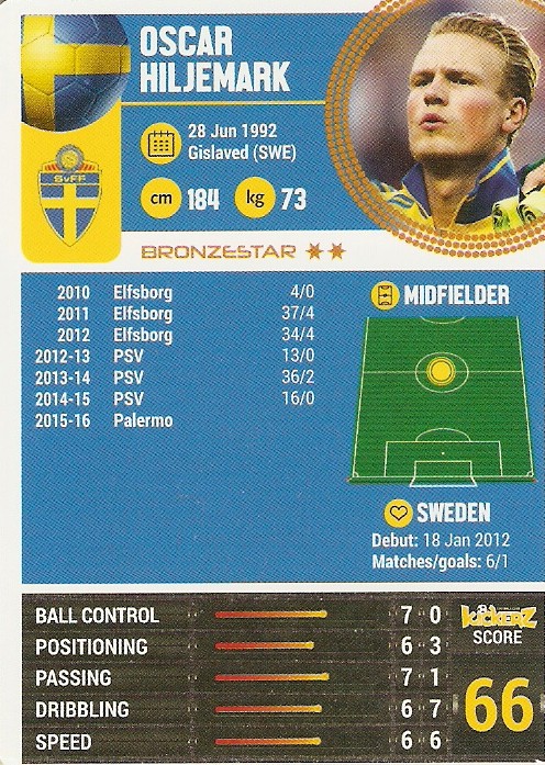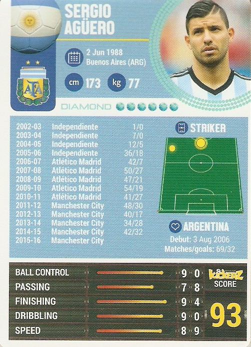 Arsenal 1 Petr Cech, Czech Republic, Gold-Star 2 Alexis Sanchez, Chile, Diamond 3 Theo Walcott, England, Gold-Star 4 Mesut Özil, Germany, Gold-Star 5 Olivier Giroud, France, Gold-Star 6 Santi Cazorla, Spain, Gold-Star Barcelona 7 Gerard Piqué, Spain, Gold-Star 8 Andrés Iniesta, Spain, Gold-Star 9 Luis Suárez, Uruguay, Gold-Star 10 Lionel Messi, Argentina, Diamond 11 Neymar Jr, Brazil, Diamond 12 Ivan Rakitic, Croatia, Gold-Star Bayern München 13 Manuel Nauer, Germany, Diamond 14 Arjen Robben, Holland, Diamond 15 Thomas Müller, Germany, Gold-Star 16 Franck Ribéry, France, Gold-Star 17 David Alaba, Austria, Gold-Star 18 Robert Lewandowski, Poland, Gold-Star Chelsea 19 Thibaut Coutois, Belgium, Gold-Star 20 Cesc Fábregas, Spain, Gold-Star 21 Eden Hazard, Belgium, Diamond 22 Diego Costa, Brazil, Gold-Star 23 Pedro, Spain, Gold-Star 24 Gary Cahill, England, Gold-Star Juventus 25 Gianluigi Buffon, Italy, Gold-Star 26 Paul Pogba, France, Gold-Star 27 Giorgio Chiellini, Italy, Gold-Star 28 Alvaro Morata, Spain, Gold-Star 29 Claudio Marchisio, Italy, Gold-Star 30 Mario Mandzukic, Croatia, Gold-Star Liverpool 31 Philippe Coutinho, Brazil, Gold-Star 32 Christian Benteke, Belgium, Gold-Star 33 Jordan Henderson, England, Gold-Star 34 Roberto Firmino, Brazil, Gold-Star 35 Daniel Sturridge, England, Gold-Star 36 Simon Mignolet, Belgium, Gold-Star Manchester City 37 Joe Hart, England, Gold-Star 38 Vincent Kompany, Belgium, Gold-Star 39 Raheem Sterling, England, Gold-Star 40 Sergio Agüero, Argentina, Diamond 41 David Silva, Spain, Gold-Star 42 Kevin de Bruyne, Belgium, Gold-Star Manchester United 43 David de Gea, Spain, Gold-Star 44 Wayne Rooney, England, Gold-Star 45 Juan Mata, Spain, Gold-Star 46 Memphis Depay, Holland, Gold-Star 47 Anthony Martial, France, Gold-Star 48 Bastian Schweinsteiger, Germany, Gold-Star Paris SG 49 Zlatan Ibrahimovic, Sweden, Diamond 50 Thiago Silva, Brazil, Diamond 51 Lucas Moura, Brazil, Gold-Star 52 Angel Di María, Argentina, Gold-Star 53 Blaise Matuidi, France, Gold-Star 54 Edison Cavani, Uruguay, Gold-Star Real Madrid 55 James Rodríguez, Colombia, Gold-Star 56 Sergio Ramos, Spain, Gold-Star 57 Gareth Bale, Wales, Gold-Star 58 Karim Benzema, France, Gold-Star 59 Luka Modric, Croatia, Gold-Star 60 Cristiano Ronaldo, Portugal, Diamond Norwegian Star 61 Martin Ödegaard, Norway 62 Stefan Johansen, Norway 63 Omar Elabdellaoui, Norway 64 Joshua King, Norway 65 P. C. Skjelbred, Norway 66 Håvard Nordtveit, Norway Swedish Star 67 John Guidetti, Sweden 68 Markus Rosenberg, Sweden 69 Oscar Hiljemark, Sweden 70 Jonas Olsson, Sweden 71 Albin Ekdal, Sweden 72 Erkan Zengin, Sweden Legend 73 Zinedine Zidane, France 74 Ronaldo, Brazil 75 Diego Maradona, Argentina 76 Pelé, Brazil 77 Marco van Basten, Holland 78 Michel Platini, France 79 Johan Cruyff, Holland 80 George Best, England 81 Franz Beckenbauer, Germany 82 Peter Schmeichel, Denmark 83 Roberto Baggio, Italy 84 Zico, Brazil Ajax 85 Jasper Cillessen, Holland, Silver-Star 86 Arkadiusz Milik, Poland, Silver-Star 87 Viktor Fischer, Denmark, Silver-Star Atletico Madrid 88 Antoine Griezmann, France, Gold-Star 89 Koke, Spain, Gold-Star 90 Jackson Martínez, Colombia, Gold-Star Benfica 91 Eduardo Salvio, Argentina, Silver-Star 92 Nicolás Gaitán, Argentina, Silver-Star 93 Jonas, Brazil, Silver-Star CSKA Moskva 94 Igor Akinfeev, Russia, Silver-Star 95 Seydou Doumbia, Ivory Coast, Silver-Star 96 Roman Eremenko, Finland, Silver-Star Borussia Dortmund 97 Mats Hummels, Germany, Gold-Star 98 Marco Reus, Germany, Gold-Star 99 Ilkay Gündogan, Germany, Gold-Star Everton 100 Romelu Lukaku, Belgium, Silver-Star 101 Leighton Baines, England, Silver-Star 102 Ross Barkley, England, Silver-Star Fenerbache 103 Robin van Persie, Holland, Gold-Star 104 Nani, Portugal, Silver-Star 105 Simon Kjaer, Denmark, Silver-Star Galatasaray 106 Lukas Podolski, Germany, Silver-Star 107 Wesley Sneijder, Holland, Gold-Star 108 Selcuk Inan, Turkey, Silver-Star Inter Milan 109 Mauro Icardi, Argentina, Silver-Star 110 Ivan Perisic, Croatia, Silver-Star 111 Andrea Ranocchia, Italy, Silver-Star Bayer Leverkusen 112 Hakan Calhanoglu, Turkey, Silver-Star 113 Bernd Leno, Germany, Silver-Star 114 Lars Bender, Germany, Silver-Star Lyon 115 Alexandre Lacazette, France, Gold-Star 116 Nabil Fekir, France, Silver-Star 117 Mathieu Valbuena, France, Gold-Star Milan 118 Carlos Bacca, Colombia, Silver-Star 119 Mario Balotelli, Italy, Silver-Star 120 Mattia de Sciglio, Italy, Silver-Star Monaco 121 Joao Moutinho, Portugal, Gold-Star 122 Jeremy Toulalan, France, Silver-Star 123 Bernardo Silva, Portugal, Silver-Star PSV Eindhoven 124 Luuk de Jong, Holland, Silver-Star 125 Jetro Willems, Holland, Silver-Star 126 Andrés Guardado, Mexico, Silver-Star Roma 127 Francesco Totti, Italy, Gold-Star 128 Gervinho, Ivory Coast, Gold-Star 129 Daniele de Rossi, Italy, Gold-Star Sevilla 130 Ever Banega, Argentina, Silver-Star 131 Fernando Llorente, Spain, Silver-Star 132 José A. Reyes, Spain, Silver-Star Shakhtar Donetsk 133 Darijo Srna, Croatia, Silver-Star 134 Alex Teixeira, Brazil, Silver-Star 135 Bernard, Brazil, Silver-Star Southampton 136 Graziano Pellé, Italy, Silver-Star 137 Sadio Mané, Senegal, Silver-Star 138 Dusan Tadic, Serbia, Silver-Star Tottenham 139 Christian Eriksen, Denmark, Gold-Star 140 Harry Kane, England, Gold-Star 141 Hugo Lloris, France, Gold-Star Valencia 142 Alvaro Negredo, Spain, Gold-Star 143 Daniel Parejo, Spain, Silver-Star 144 Paco Alcácer, Spain, Silver-Star Wolfsburg 145 Luiz Gustavo, Brazil, Silver-Star 146 Julian Draxler, Germany, Silver-Star 147 Ricardo Rodriguez, Switzerland, Silver-Star Zenit St. Petersburg 148 Ezequiel Garay, Argentina, Gold-Star 149 Axel Witzel, Belgium, Gold-Star 150 Hulk, Brazil, Gold-Star Limited Edition Promo 11 Neymar Jr, Barcelona & Brazil, Diamond 49 Zlatan Ibrahimovic, Paris SG & Sweden, Diamond