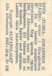 1 Arne Larsson Djurgårdens IF 2 Stig Eriksson Djurgårdens IF 3 Karl-Erik Andersson Djurgårdens IF 4 Gösta Sandberg Djurgårdens IF 5 John Eriksson Djurgårdens IF (two versions, 1953 and 1954) 6 Ola Edlund Djurgårdens IF 7 Ove Nilsson Djurgårdens IF 8 Ingvar Pettersson Djurgårdens IF 9 Sigvard Parling Djurgårdens IF 10 Lennart "Foppa" Forsberg Djurgårdens IF 11 Hans "Tvilling" Andersson Djurgårdens IF 12 Jan-Inge Sjöstrand IFK Malmö 13 Leif Nilsson IFK Malmö 14 Sture Tarring IFK Malmö 15 Nils Johansson IFK Malmö 16 Bertil Wingvist IFK Malmö 17 Kjell Nilsson IFK Malmö 18 Tore Welén IFK Malmö 19 Gustaf Malmros IFK Malmö 20 Hans Malmström Hälsingborgs IF 21 Berndt Ivegren Djurgårdens IF 22 Bernt Andersson Djurgårdens IF 23 Sven Axbom IFK Norrköping 24 Holger Nyman IFK Norrköping 25 Gösta Nordahl IFK Norrköping 26 Herbert Sandin IFK Norrköping (two versions, 1953 and 1954) 27 Karl Edvin Steen IFK Norrköping 28 Henry "Putte" Källgren IFK Norrköping (two versions, 1953 and 1954) 29 Einar"Rönnskär" Karlsson IFK Norrköping 30 Olle Håkansson IFK Norrköping 31 Göte Arnell IFK Norrköping 32 Bengt Nyholm IFK Norrköping 33 Roland Niva IFK Norrköping 34 Stendy Appeltofft Hälsingborgs IF 35 Åke Jönsson Hälsingborgs IF (four versions, 1953, 1954, 54/55 and 55/56) 36 Bengt Roslund Hälsingborgs IF 37 Rolf Dunker Hälsingborgs IF 38 Sven "Flua" Persson Hälsingborgs IF (two versions, 1953 and 1954) 39 Karl Svensson Hälsingborgs IF (three versions, 1953, 1954 and 55/56) 40 Henry Christensson Hälsingborgs IF 41 John Wikdahl Hälsingborgs IF 42 Gerhard Andersson Hälsingborgs IF 43 Sven Ove Svensson Hälsingborgs IF (five versions, 1953, 1953 w green back, 1954, 54/55 and 55/56) 44 Malte Mårtensson Hälsingborgs IF (two versions, 1953 and 1954) 45 Janne Aronsson Degerfors 46 Lars Eriksson Degerfors 47 Magnus Bergström Degerfors 48 Olle Ahlund Degerfors (three versions, 1953, 54/55 and 55/56) 49 Sven Bergsten Degerfors 50 Lennart Lindskog Degerfors (two versions, 1953 and 1954) 51 Arne Hagman Deqerfors 52 Mats Nilsson Degerfors 53 Sanny Jakobsson GAIS 54 Stig Björkman GAIS 55 Sven Espling Hälsingborgs IF 56 Bengt Kjell AIK 57 Arne "Bimbo" Lind AIK 58 John Göras AIK 59 Lars "Lacke" Hall AIK 60 Ingvar "Tjotta" Olsson AIK 61 Lennart Askinger AIK 62 Bertil Bäckvall AIK 63 Gösta Nilsson AIK (two versions, 1953 and 1954) 64 Lars Larsson AIK 65 Bertil Johansson AIK 66 Roland Eriksson AIK 67 Karl Axel Svensson Jönköping Södra 68 Rune Dalengård Jönköping Södra 69 Carl Olof Claesson Jönköping Södra 70 Rolf Ljungvall Jönköping Södra (two versions, 1953 and 1954) 71 Arne Selmosson Jönköping Södra 72 Göte Ståhl Jönköping Södra (two versions, 1953 and 1954) 73 Göte Lindstrand Jönköping Södra 74 Bengt Elofsson Jönköping Södra 75 Lars Spjuth Jönköping Södra (two versions, 1953 and 1954) 76 Allan Broling Jönköping Södra 77 Arthur Jönsson Malmö FF 78 Nils-Åke "Kajan" Sandell Malmö FF (four versions, 1953, 1954, 54/55 and 55/56) 79 Erik Nilsson Malmö FF 80 Henry Tillberg Malmö FF 81 Ingvar Rydell Malmö FF (two versions, 1953 and 1954) 82 Tore Svensson Malmö FF 83 Rolf Andersson Malmö FF 84 Sune Sandbring Malmö FF 85 Åke Hansson Malmö FF 85 Åke Hansson Malmö FF 86 Egon "Todde" Jönsson Malmö FF 87 Arne Månsson Malmö FF 88 Henry Thillberg Malmö FF (four versions, 1953, 1954, 54/55 and 55/56) 89 Rune Jingård GAIS (two versions, 1953 and 54/55) 90 Bertil Sernros GAIS 91 Bertil "Jompa" Andersson GAIS (two versions, 1953 and 1954) 92 Stig Andersson GAIS (two versions, 1953 and 1954) 93 Karl Alfred Jakobsson GAIS (two versions, 1953 and 1954) 94 Kurt Thorstensson GAIS (two versions, 1953 and 1954) 95 Ingemar Eriksson GAIS (two versions, 1953 and 1954) 96 Arne Lund GAIS 97 Leif Forsberg GAIS three versions, 1953, 1954 and 54/55) 98 Jörgen Engkvist Malmö FF 99 Nils "Åkarp" Andersson Malmö FF 100 Karl Blomqvist Örebro SK 101 Lennart Alpstam Örebro SK 102 Per Thörner Örebro SK 103 Gunnar Ring Örebro SK 104 Olle Sääw Örebro SK 105 Arne Lundkvist Örebro SK 106 Lars Karlsson Örebro SK 107 Orvar Bergmark Örebro SK 108 Gösta Lindh Örebro SK 109 Ragnar Larsson Örebro SK 110 Gunnar Burström Örebro SK 111 Holger Hansson IFK Göteborg 112 Bengt "Fölet" Berntsson IFK Göteborg (four versions, 1953, 1954, 54/55 and 55/56) 113 Sven Sjöblom IFK Göteborg (two versions, 1953 and 1954) 114 Erik Bergqvist IFK Göteborg (two versions, 1953 and 1954) 115 Henry Andersson IFK Göteborg 116 Åke Norén IFK Göteborg (four versions, 1953, 1954, 54/55 and 55/56) 117 Arne Lundkvist IFK Göteborg 118 Nils Ekeroth IFK Göteborg (two versions, 1953 and 1954) 119 Torbjörn Jonsson IFK Norrköping 120 Hans Olsson GAIS 121 Axel Fernström IFK Göteborg 122 Henry Larsson Elfsborg 123 Lennart Samuelsson Elfsborg (two versions, 1953 and 1954) 124 Rune Persson Elfsborg 125 Olle Claesson Elfsborg 126 Urban Larsson Elfsborg (two versions, 1953 and 1954) 127 Lars Råberg Elfsborg (two versions, 1953 and 1954) 128 Henry Larsson IFK Göteborg 129 Rune Emanuelsson IFK Göteborg 130 Bertil Samuelsson Jönköping Södra 131 Lars Jangblad IFK Göteborg 132 Lennart Holmqvist Kalmar FF (two versions, 1954 and 54/55) 133 Lennart Johansson Kalmar FF 134 Bertil "Jeppe" Olsson Kalmar FF 135 Rolf Jonsson Kalmar FF 136 Bertil Wennerström Kalmar FF (two versions, 1953 and 1954) 137 Bengt Rosenlund Kalmar FF (two versions, 1953 and 1954) 138 Bertil Rylander Kalmar FF (three versions, 1953, 1954 and 54/55) 139 Georg Ericsson Kalmar FF (two versions, 1953 and 1954) 140 Jan-Erik Hellström Kalmar FF 141 Karl-Erik Herrlin Kalmar FF 142 Douglas Nyman Elfsborg 143 *** Never issued ? *** 144 Sven-Inge Bergsten Sandvikens IF 145 Arne Hodin Sandvikens IF (two versions, 1953 and 1954) 146 Sven Eriksson Sandvikens IF (two versions, 1953 and 1954) 147 Stig Olsson Sandvikens IF (two versions, 1953 and 1954) 148 Curt Cahlman Sandvikens IF (two versions, 1953 and 1954) 149 Lenn