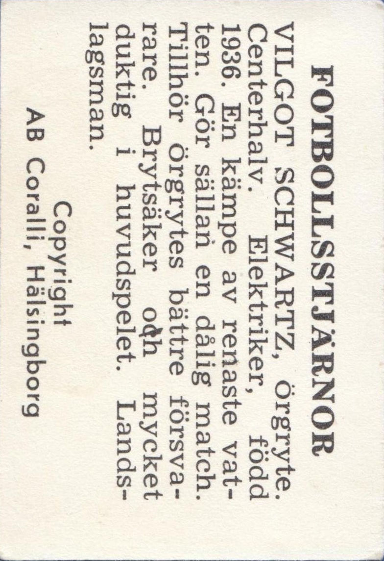 Djurgården 1 Arne Arvidsson 2 Jan Karlsson 3 Lars "Laban" Arnesson 4 Hans Mild 5 Gösta "Knivsta" Sandberg 6 Torsten Furukrantz 7 Berndt Andersson 8 Leif Eriksson 9 Hans Nilsson 10 Boris Johansson 11 Olle Hellström 12-20 - Never Issued - Malmö FF 21 Nils Hult 22 Jörgen Ohlin 23 Rolf Björklund 24 Lennart "Lill-Kick" Svensson 25 Krister Kristensson 26 Prawitz Öberg 27 Bertil Nilsson 28 Bertil Elmstedt 29 Lars Granström 30 Bo Larsson 31 Ingvar Swahn 32 Rolf Eriksson 33 Jan Ekström 34-40 - Never Issued - Örgryte 41 Kurt Johansson 42 Helge Börjesson 43 Anders Svensson 44 Vilgot Schwartz 45 Rolf Wetterlind 46 Jens Söderberg 47 Agne Simonsson 48 Rune Börjesson 49 Rolf Hansson 50 Lars Olofsson 51-60 - Never Issued - IFK Norrköping 61 Roland Andersson 62 Hans Rosander 63 Leif Holmqvist 64 Bill Björklund 65 "Bajdoff" Johansson 66 Björn Nordqvist 67 Ulf Hultberg 68 Ulf Jansson 69 Ove Kindvall 70 Örjan Martinsson 71 Lars Berglund 72-80 - Never Issued - AIK 81 Arne Lundqvist 82 Lennart Söderberg 83 Allan Wickström 84 Björn Anlert 85 Lennart Hemming 86 Tommy Stenborg 87 Inge Bengtsson 88 Björn "Lill-Garvis" Carlsson 89 Sören Häggström 90 Benny Söderling 91 Lennart Backman 92-100 - Never Issued - Hälsingborg 101 Stig Hallberg 102 Berne Hasselqvist 103 Bengt-Ove Johansson 104 Bert Olsson 105 Lars-Ove Nilsson 106 Lars-Erik Ahlberg 107 Ulf Jacobsson 108 Matts Johansson 109 Sylve Bengtsson 110 Ingvar Persson 111 Ingemar Nilsson 112-120 - Never Issued - Degerfors 121 Hans "Osten" Pettersson 122 Curt Edenvik 123 Sven Augustsson 124 Agne Andersson 125 Håkan Höglander 126 Tord Grip 127 Anders Asplund 128 Jan Aronsson 129 Leif Aronsson 130-140 - Never Issued - Hammarby IF 141 Sven Lindberg 142 Bertil Carlsson 143 Arne Larsson 144 Hans Nell 145 Inge Persson 146 Gösta Lundell 147 Björn "Bönan" Löf 148 Lennart "Nacka" Skoglund 149 Lars Nordin 150 Berndt Lif 151 Karl-Evert "YA" Skoglund 152 Tom Turesson 153 Leif "Myran" Ekstig 154 Ulf Wahlqvist 155 Håkan Magnusson 156-160 - Never Issued - IFK Göteborg 161 Gunro Lindberg 162 Paul Johansson 163 Kenny Karlsson 164 Ingvar Svensson 165 Lennart Nilsson 166 Ralph Nyberg 167 Bengt "Fölet" Berndtsson 168 Lennart Wallin 169 Bertil "Bebben" Johansson 170 Dick Andersson 171-180 - Never Issued - IF Elfsborg 181 Rolf Johansson 182 Vigar Bartholdsson 183 Jan-Olof Modig 184 Leif Olsson 185 Boris Målberg 186 Hans Gustavsson 187 Lars-Åke Gunnarsson 188 Ove Westerberg 189 Ove Grahn 190 Henry Larsson 191 Gert Christiansson 192-200 - Never Issued - Örebro SK 201 Sven-Gunnar Larsson 202 Annti Lundgren 203 Olle Sääw 204 Orvar Bergmark 205 Olle Gustavsson 206 Benny Lennartsson 207 Ronnie Olsson 208 Hans Nordin 209 Leif Wendt 210 Keit Pettersson 211 Björn Juhlin 212-220 - Never Issued - GIF Sundsvall 221 Hans Eriksson 222 Åke Jansson 223 Conny Clack 224 Jarl Andrén 225 Leopold Jihage 226 Yngve "Pecka" Nordin 227 Hans Lundblad 228 Kjell Eriksson 229 Bertil Hage